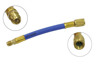 Переходник для автомобильных кондиционеров CH-N408 (SN), предназначен для заправки автомобильных кондиционеров фреоном. Этот адаптер представляет собой гибкую трубку, на одном конце которой имеется резьбовое соединение на 1/2", а на другом — 1/4".