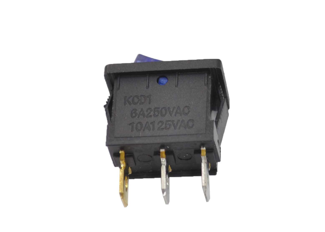 Выключатель клавишный 250V 6А (3с) ON-OFF синий с подсветкой Mini предназначен для коммутации электрических цепей переменного тока напряжением до 250В. Клавишные (Рокерные) выключатели применяются в качестве комплектующих изделий различного электрооборудования (в сетевых фильтрах и удлинителях, аудио-оборудовании, блоках питания, электроустановках на различных производствах, автомобилях, и многих других местах). Такой клавишный переключатель имеет два положения. Монтаж осуществляется без применения винтов на плоских панелях толщиной от 0.8мм до 3мм. Подключение контактов осуществляется плоской клеммой, либо с помощью пайки. Основные характеристики: Номинальное напряжение: 250В; Предельное напряжение: 1500VАС не более 1 минуты; Номинальный ток: 6A (250VAC); Контактное сопротивление: не более 35 мОм; Тип переключения: ON-OFF; Количество контактных групп: 1; Количество контактов в контактной группе: 3; Фиксация положений: да; Индикатор коммутационных положений: синий. Рабочая температура: от -25℃ до +85℃;Ресурс: 10 000 циклов.