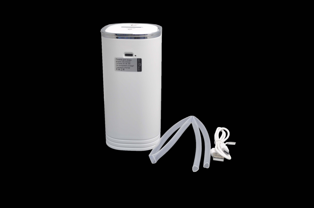 Белая электрическая помпа для воды OG-HOG10. Мощность: 5Вт. Ёмкость аккумулятора: 800мА (до 100л воды). Расход воды: 1.5 литров в минуту. Складной носик, длиной 8см. Индикатор уровня заряда. Подходит для ёмкостей: 5 / 8 / 16 / 19л. Напряжение питания: 5В / 1А - гнездо Type-C. Длина силиконовой трубки: 52см. Диаметр силиконовой трубки: 7мм