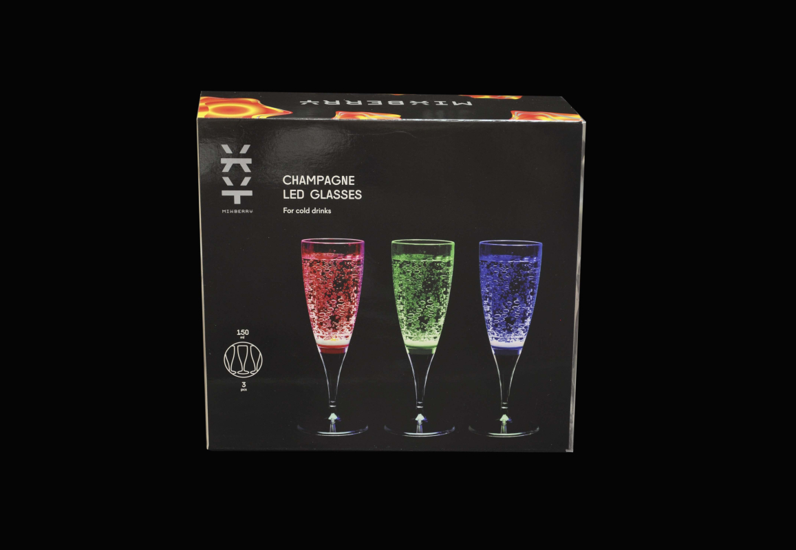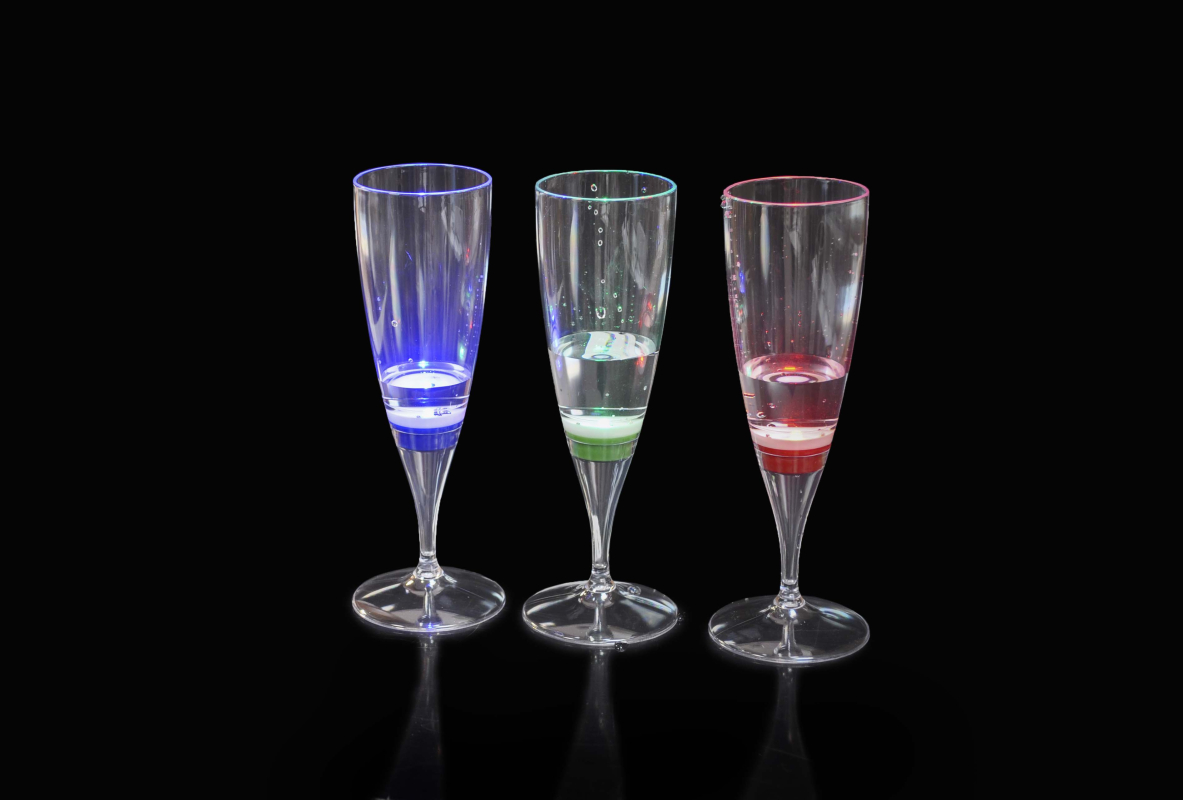 Набор LED бокалов для шампанского 3 штуки по 150мл, синий, зеленый, красный. Только для холодных напитков. Состав: пищевой пластик.