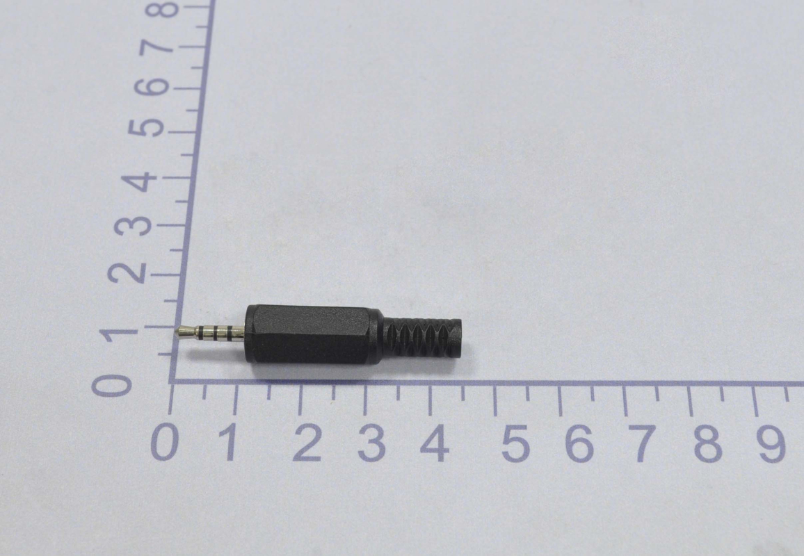 Разъем аудио-, видео 2.5мм (male) 4 контакта (черный пластик) на кабель