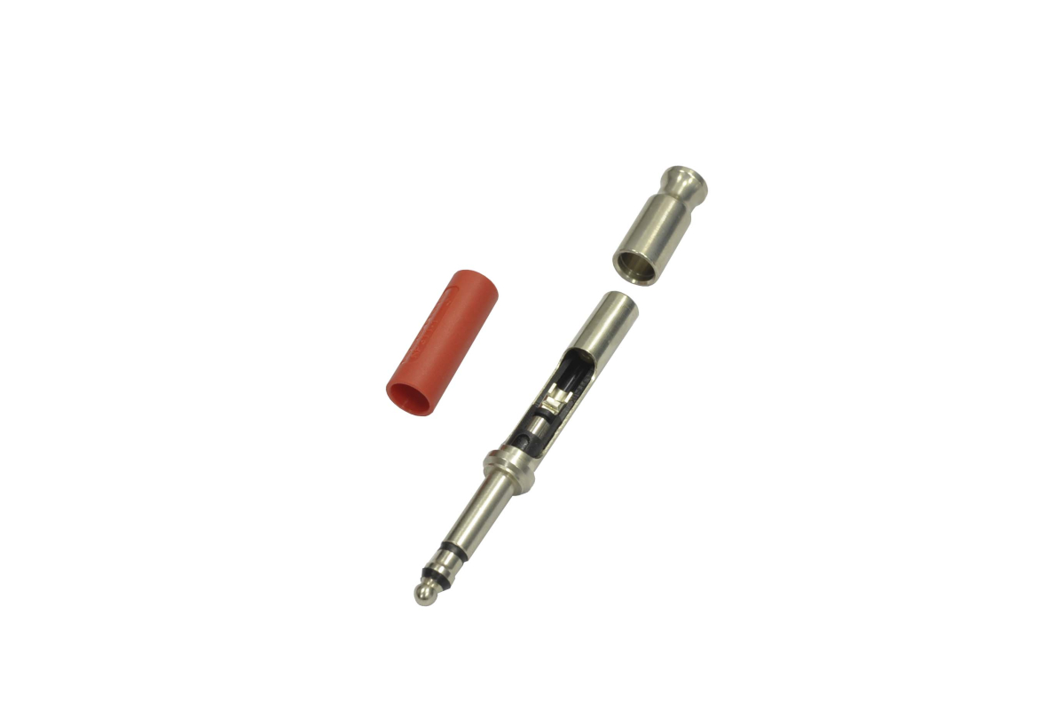 Аудио-разъем Neutrik NP3TT-1-R Bantam 4.4мм (male, стерео), TR под пайку, S под обжим (красный корпус, никелированные контакты)