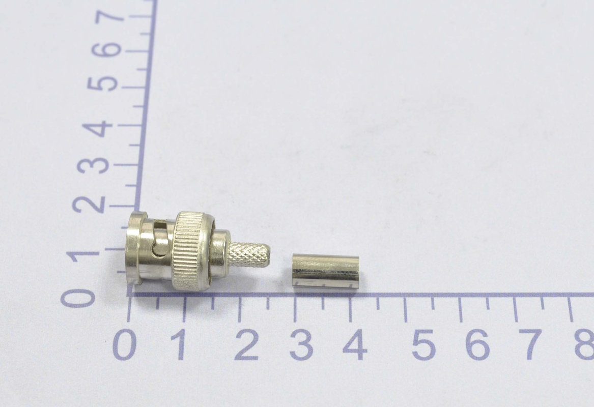 Разъем высокочастотный BNC (BNC-коннектор, male) на кабель RG-58 под обжим (для коаксиального кабеля c волновым сопротивлением 50 или 75 Ом)