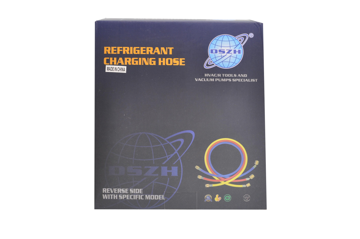 Заправочные шланги из высокопрочной резины для манометрических коллекторов и автоматических станций для работы с различными хладагентами. В комплект входит 3 шланга красный, синий, желтый длинной 90 см и для работы с фреонами (R22, R134a, R404a).Присоеденительные размеры: SAE 1/4".Рабочее давление до 30 бар. Длина 90 см