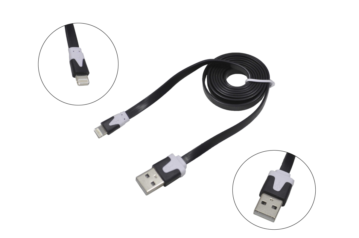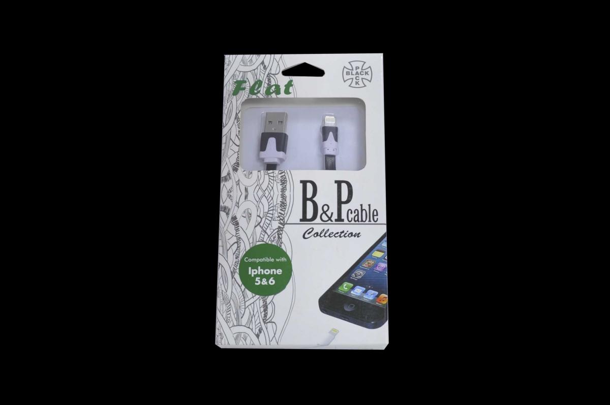 Шнур B&P USB 2.0 AM > iPhone 5/5S/6/6+/6S/6S+/7/7+8/8+/X Cable flat (1,0 м.) black