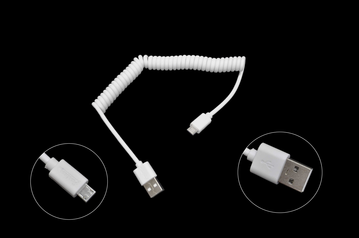 Шнур USB 2.0 type A штекер (male) - USB type В (microB) штекер (male), белый, витой шнур