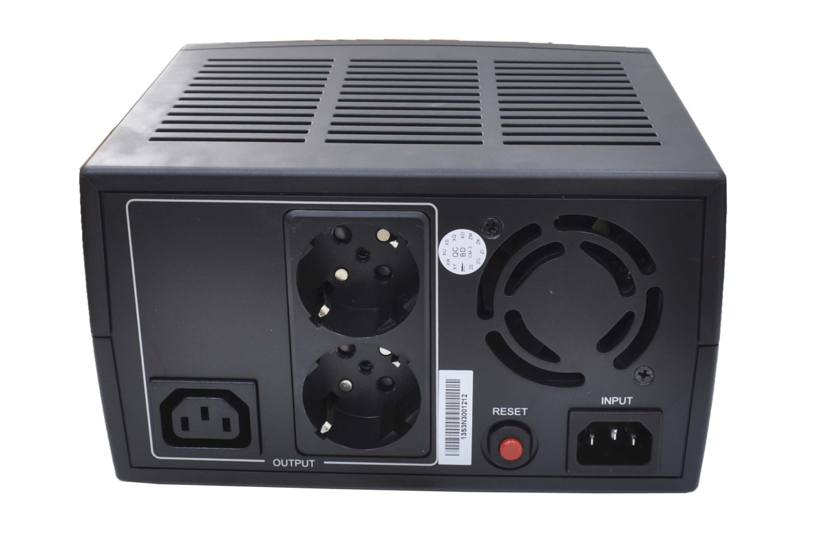 Стабилизатор напряжения CyberPower V-ARMOR 1000E. Тип стабилизатора релейный. Полная мощность 1 кВ·А. Тип входного напряжения однофазное (220 В, 230 В) Входное рабочее напряжение 165-278 В. Точность стабилизации 10%. Выходное напряжение 198-242 В. Входная частота 50-60 Гц. Форма выходного сигнала синусоида без искажений. Защита от короткого замыкания, от перегрева, от повышенного напряжения, от помех. Физические характеристики и функциональность. Размещение напольное. Тип охлаждения принудительное. Отображение информации светодиодные индикаторы. Выходные розетки 3. Влажность окружающей среды 90% (макс.). Рабочая температура 0 °C – 40 °C. Размеры и вес, ШхВхГ 200х120х150 мм