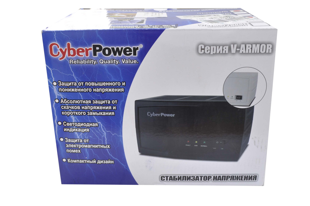 Обращаем ваше внимание на то, что информация, изображения и характеристики для Стабилизатор напряжения CyberPower V-ARMOR 1000E (2EURO+1 IEC) несет исключительно информационный
