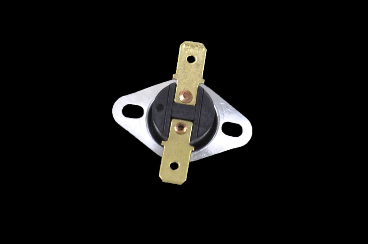Термостат нормально-замкнутый KSD-301 (биметаллическая пара находится в замкнутом состоянии, при нагреве происходит деформация пластин и размыкание цепи), температура 50 градусов, 15А