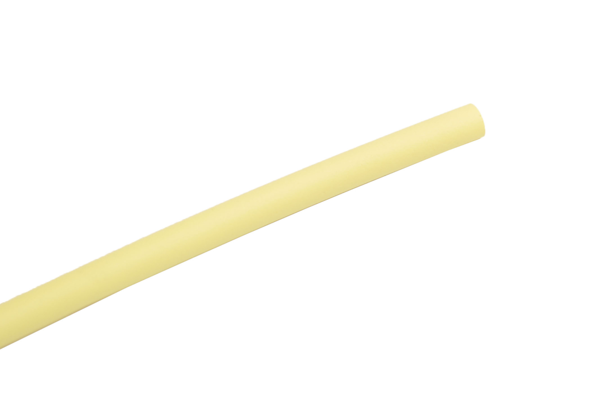 Термоусадочная трубка клеевая 3,2/1,0 мм из желтого полиолефина с нанесенным клеем на внутреннюю часть трубки. Диаметр трубки до усадки – 3,2 мм, после усадки – 1,0мм. Относительное удлинение при разрыве - не менее 200%. Температура усадки - 150℃. Температурный диапазон в режиме эксплуатации - от - 40 до + 125℃. Прочность на растяжение - не менее 10.4 МПа. Электрическая прочность - не мене 19.7 кВ/мм. Рабочее напряжение - 600 В. Удельное электрическое сопротивление - 1014 Ом/см. Коэффициент усадки 3:1