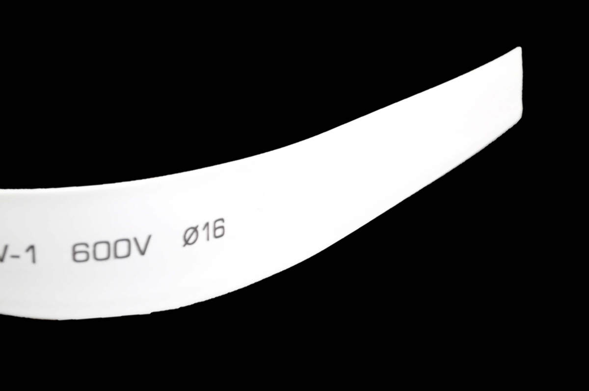 Термоусадочная трубка 16,0/8,0 мм изготовлена из белого полиолефина. Трубка имеет свойство подавления горения, то есть она неспособна поддерживать горение, в отсутствии открытого огня затухает самостоятельно и неспособна воспламеняться. Начальный диаметр трубки составляет 16 мм, после усадки 8 мм.Это надежный герметик, усиливающий прочность элементов конструкции. Назначение: предназначена для восстановления поврежденной изоляции, герметизации поверхностей и электрических соединений кабелей и проводов, бандажирования и маркировки проводов, для создания антикоррозийных защитных и декоративных покрытий. Технические характеристики: 1. Горючесть - не поддерживает горение. 2. Относительное удлинение при разрыве - не менее 200%. 3. Температура усадки - 150℃ 4. Температурный диапазон в режиме эксплуатации - от - 40 до + 125℃. 5. Прочность на растяжение - не менее 10.4 МПа. 6. Электрическая прочность - не мене 19.7 кВ/мм. 7. Рабочее напряжение - 600 В. 8. Удельное электрическое сопротивление - 1014 Ом/см