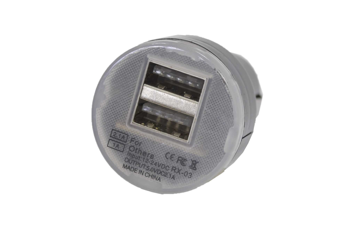 Зарядное устройство для прикуривателя 2 выхода USB 5V 1000mA/2100mA. Длина: 5,5 см