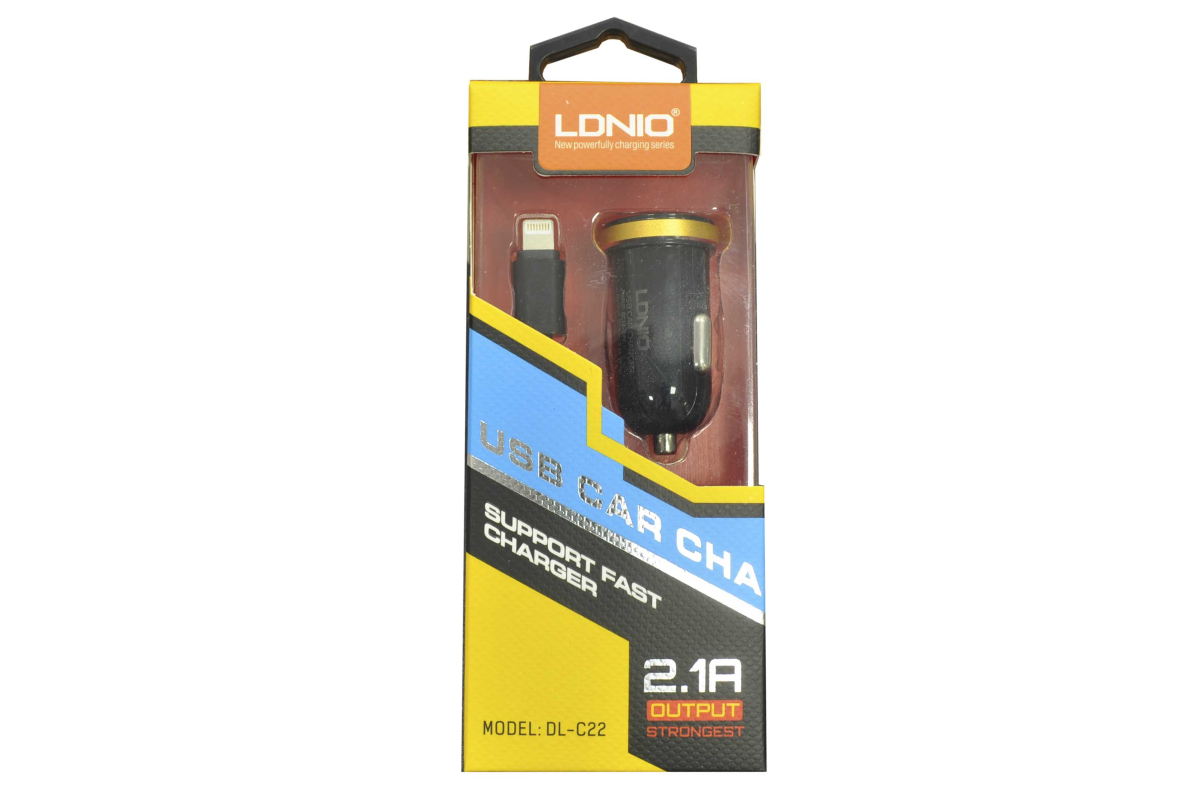 Зарядное устройство от прикуривателя 2USB (2.1A + 1A) LDNIO DL-C22 + кабель для iPhone 5/5S