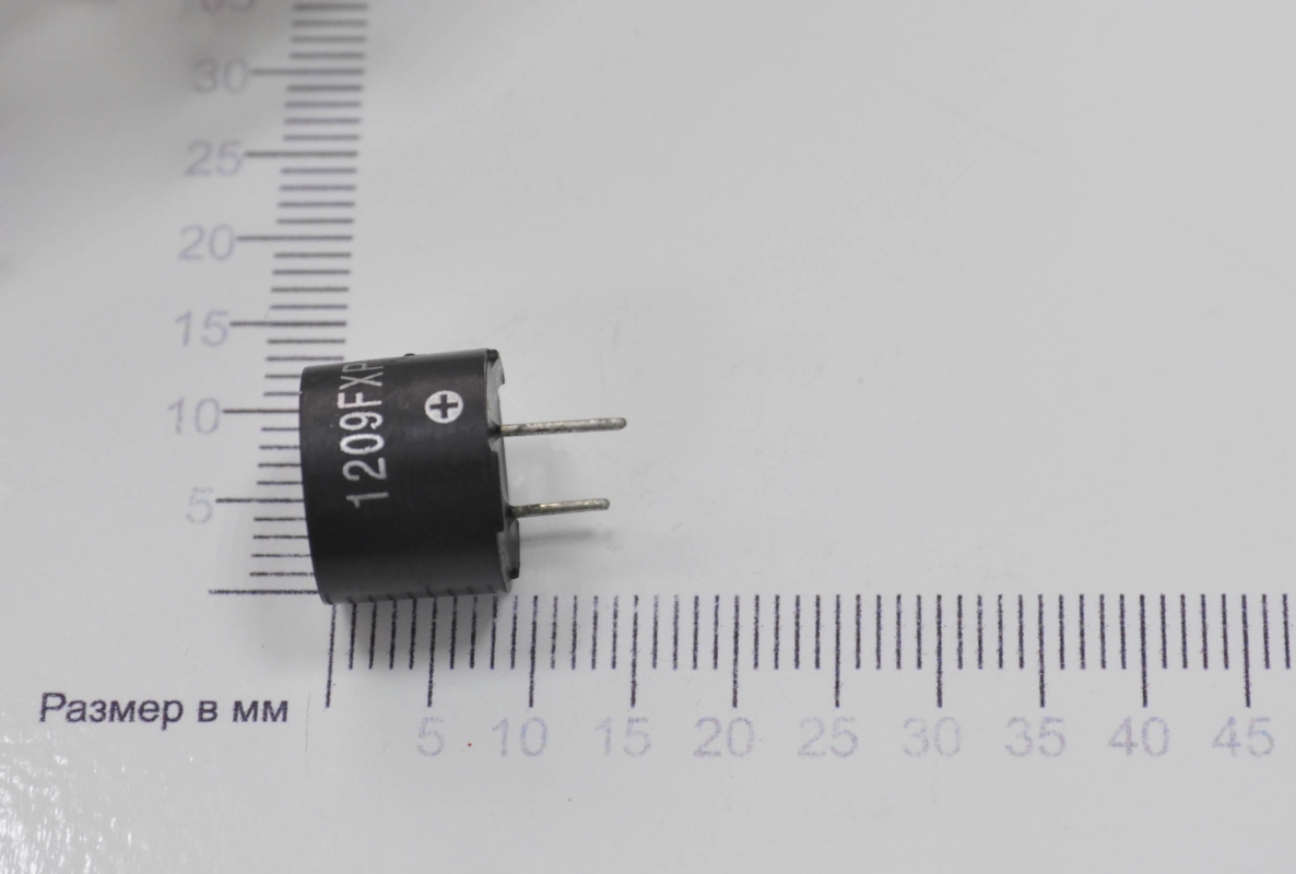 Электромагнитный излучатель звука TR1209Y со встроенным генератором. Технические характеристики TR1205Y: номинальное напряжение: 9 В, номинальный ток: £ 30 мА, громкость: ≥ 85 Дб (на 10см), рабочая частота: 2300±300 Гц, диаметр корпуса : 12 мм, толщина корпуса h: 9.5 мм, рабочая температура: -20…+70 °С