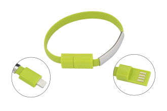 Кабель Gmii USB 2.0 type A - Apple Lightning, 8 пин, в виде браслета, длина 22,5см, зеленый цвет, плоский