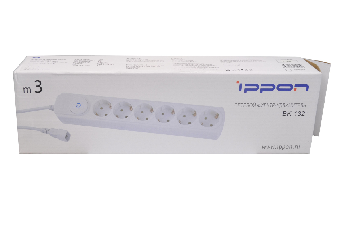 102073 Сетевой удлинитель Ippon BK-132 220V 6 розеток 3.0м, белый