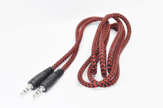 Аудио кабель Jack 3,5мм - Jack 3,5мм, длина 1,45 метра, матерчатая оплетка, красный