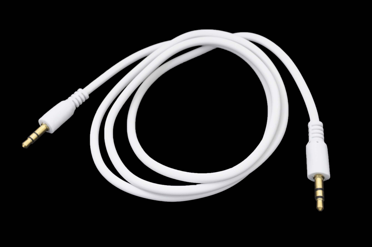 Кабель AUX круглый, рифленый с трех контактными 3,5 mini-jack разъемами. Длина 1 метр. Цвет белый