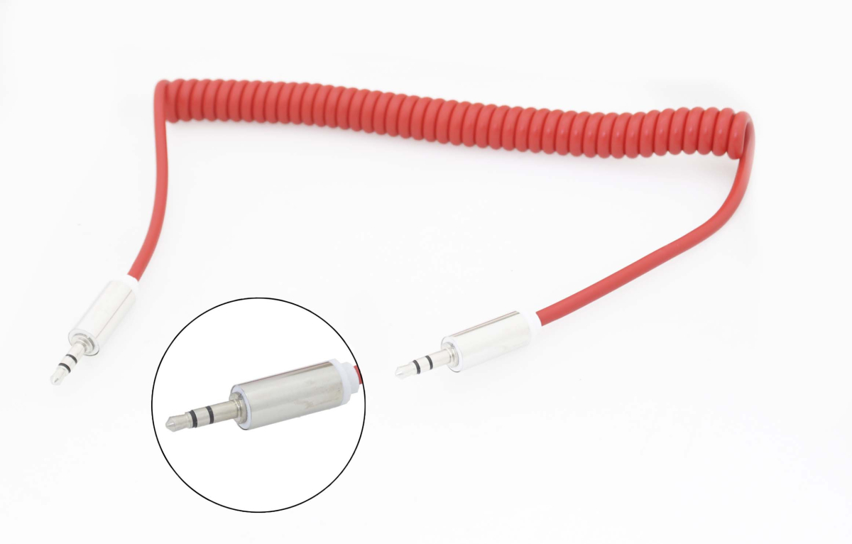 Круглый прорезиненный AUX-кабель с 3-контактными 3,5 mini-jack разъемами. Кабель имеет форму пружины, что увеличивает его гибкость и снижает вероятность спутывания. Прочная конструкция с твердыми формованными разъемами. Длина 1,7 метра