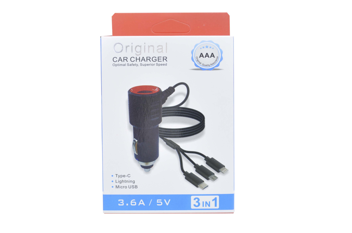 16077 Автомобильное зарядное устройство универсальное P-18, 3 разъема Micro USB/iPhone 5/6/7/Type-C 5V 3,6 A