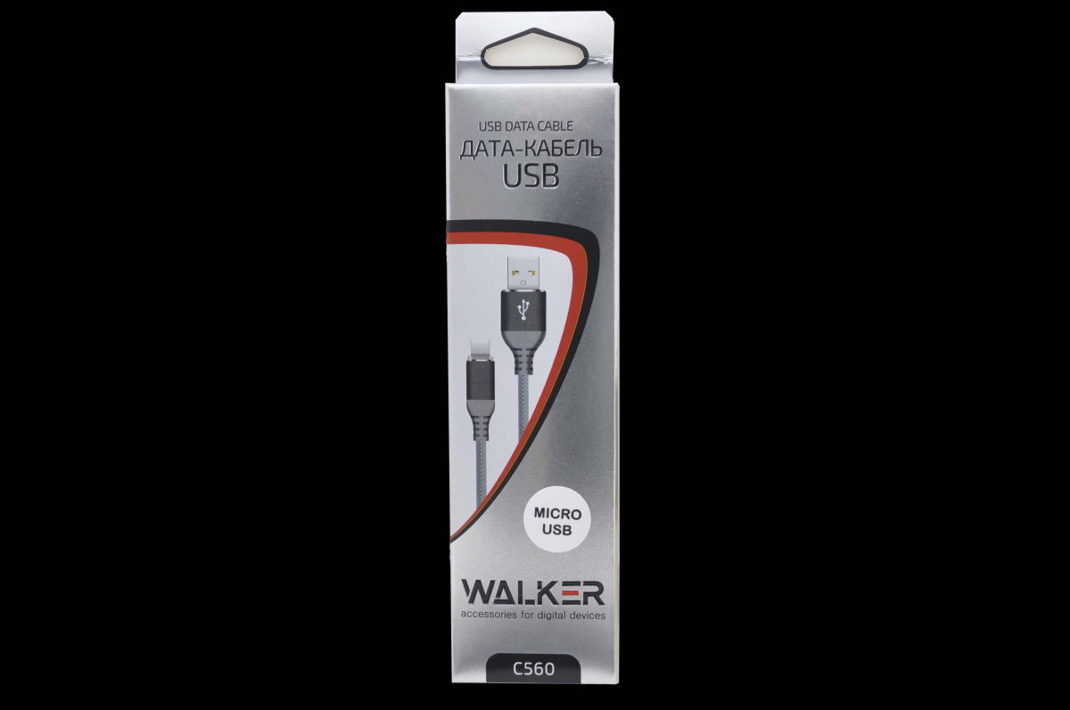 16834 Кабель Walker C560 USB-microUSB, прорезиненный, металл разьем, белый