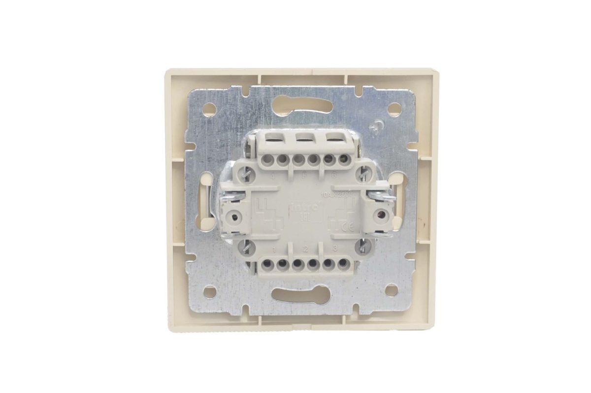 Выключатель Intro Plano 1-105-02 двухклавишный с подсветкой, 10А-250В, IP20, скрытой установки, слоновая кость. Высота 80. Глубина, мм 40. Ширина, мм 82. Номинальное напряжение бытовой сети, В 250В. Номинальный ток, А 10. Подсветка есть. Сечение провода 1,5 мм^2 (макс. 4 мм^2)