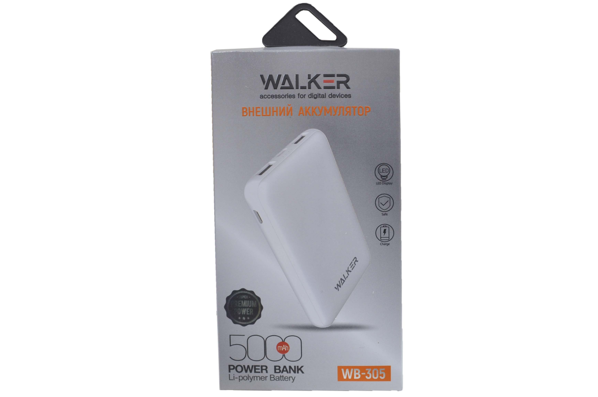 20223 Портативное зарядное устройство Walker WB-305 5000mA-ч, 2USB, 2.1A, черное