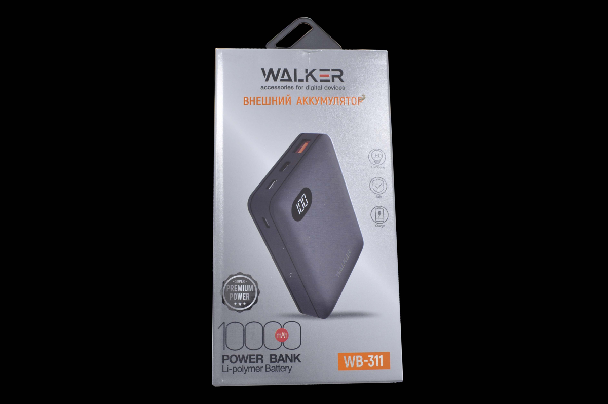 20228 Портативное зарядное устройство Walker WB-311 10000mA-ч, 1USB, 2.1A, белое