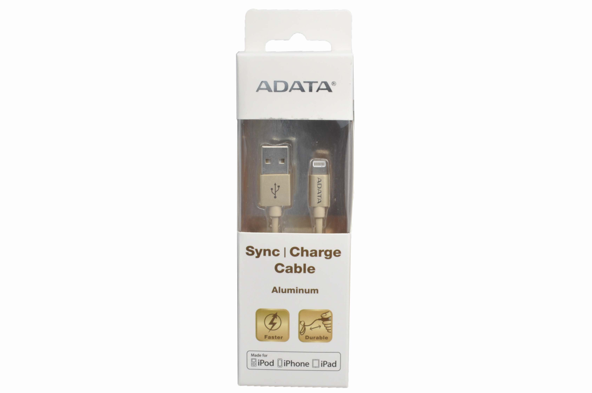 Кабель A-Data USB type A male - для Apple iPhone Lightning, металлические коннекторы, золотой цвет, длина 1 метр, оплетка ПВХ