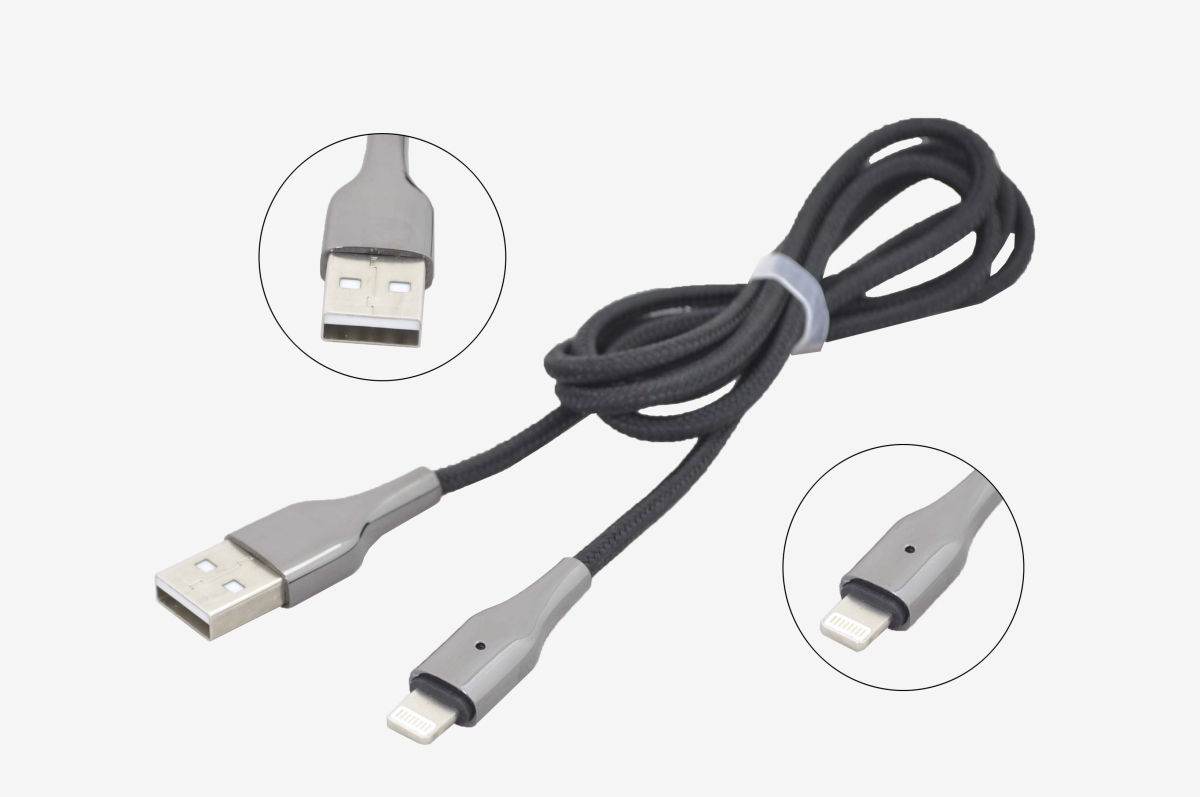 Кабель USB type A (male) - Apple Lightning (male) выполнен в текстильной оплётке и имеет глянцевые металлические коннекторы. Особенностью данного кабеля является индикатор заряда. Пропускная способность кабеля 3.1А, поддержка технологий быстрого заряда. Фирменная картонная упаковка.
