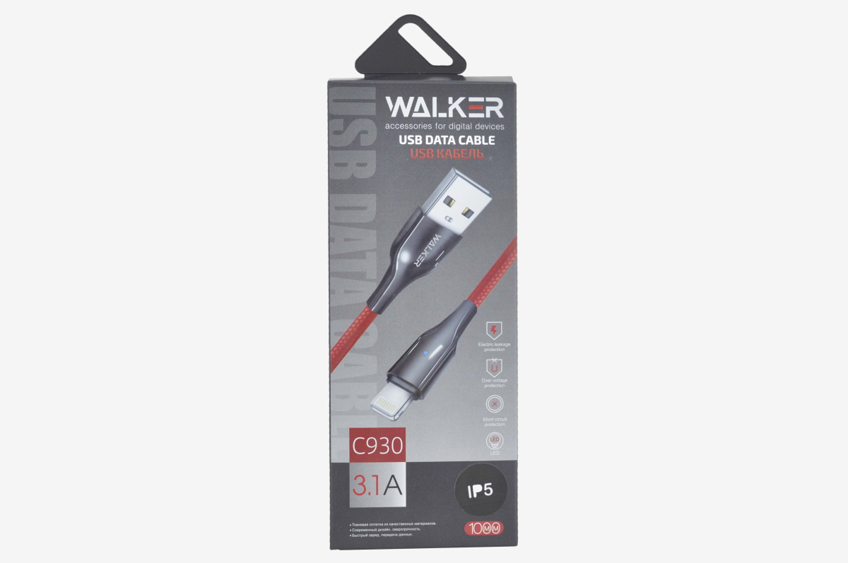22614 Кабель Walker C930 для iPhone, в матерчатой обмотке, с индикатором, черный