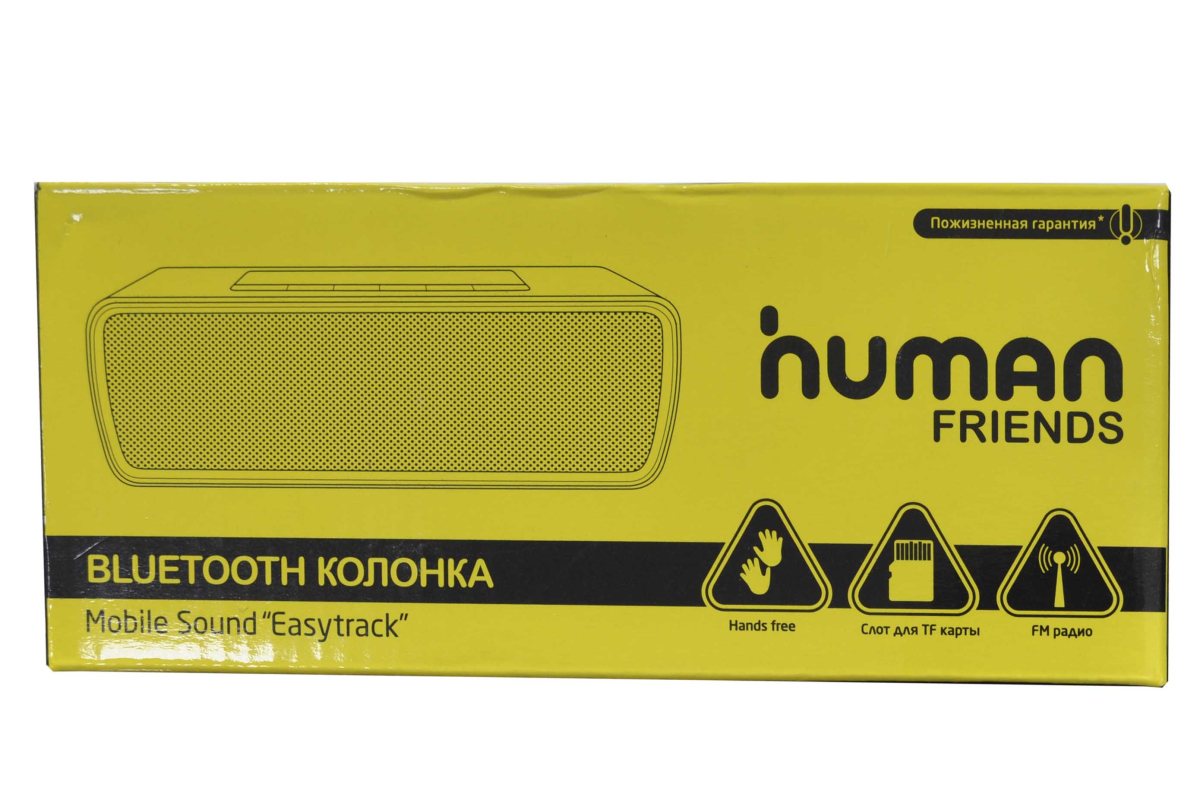 Портативная акустика Human Friends Easytrack. Звук стерео. Суммарная мощность 6 Вт. Питание от батарей. Радиотюнер есть. Диапазон воспроизводимых частот 130 - 20000 Гц. Отношение сигнал/шум 65 дБ. Количество полос AC 1. Широкополосный динамик 40 мм. Тип элементов питания свой собственный. Время работы 7 ч. Подключение Входы линейный (разъем mini jack). Интерфейсы Bluetooth. Поддержка карт памяти microSD. Функции встроенный микрофон. Размеры (ШxВxГ) 167x56x54 мм. Вес 0.33 кг (с элементами питания)