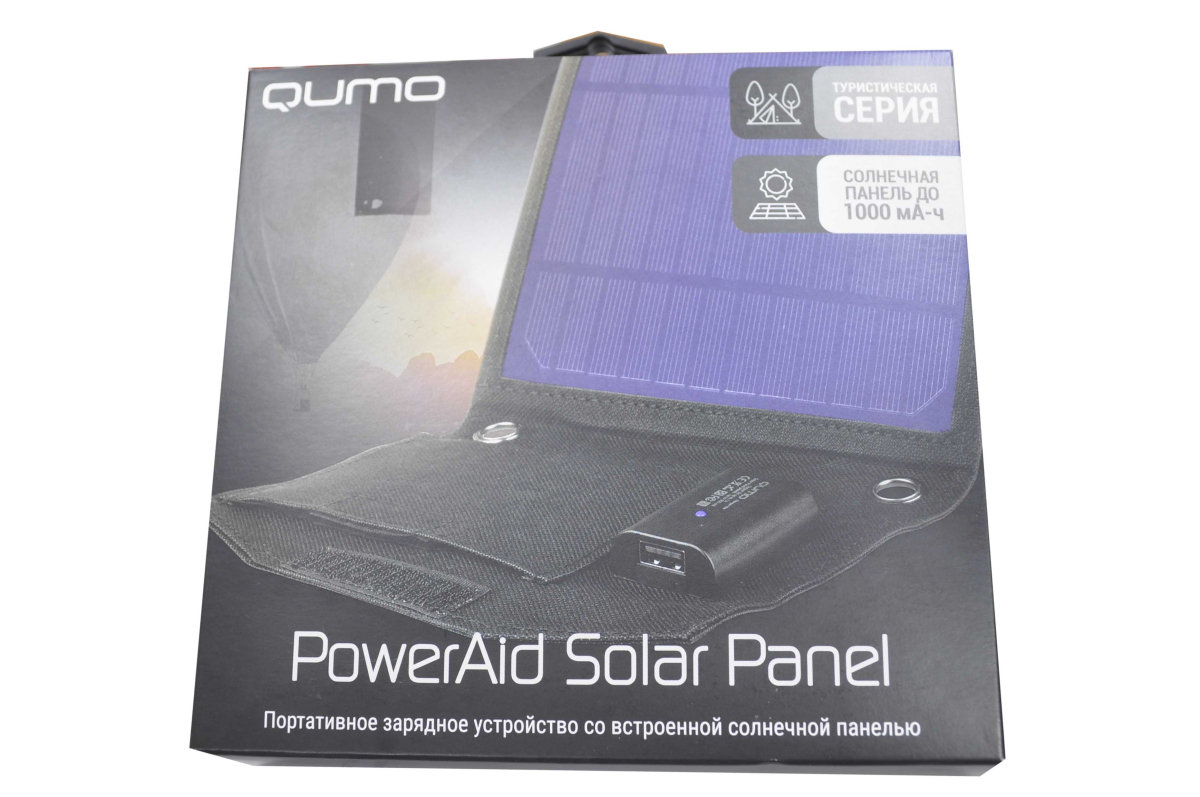 Зарядное устройство Qumo Solar Panel, работает от солнечной энергии. Индикация заряда аккумулятора Да. Корпус. Тип корпуса "книжка". Материал корпуса ткань. Серия модели Tourist .Цвет, размеры и вес Габаритные размеры (В*Ш*Г) 165*166*26 мм. Вес 247 г. Цвет черный. Электропитание Зарядка от солнечной батареи Да. Рабочее напряжение 5.0 В. Максимальная нагрузка (мА) 1000. Интерфейсы Порт USB 2.0 тип A 1 шт