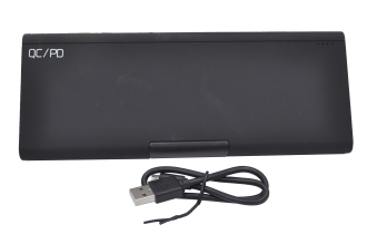 Портативное зарядное устройство (Powerbank) Qumo Poweraid. Емкость: 26000 мА⋅ч. Одновременная зарядка двух устройств. Фонарик, вход: разъем: micro USB, Напряжение: 5/9 В, Ток: 1 А, выход: максимальный ток: 2.1 А, разъемы: USBx2, разъемы microB и type C, поддержка быстрой зарядки