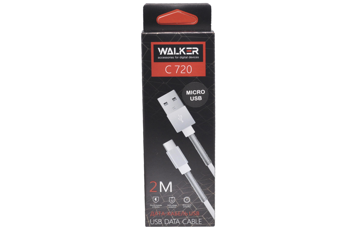 25096 Кабель Walker C720 USB - microUSB (2 метра), с пружинами, черный