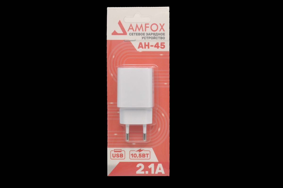 27120 Сетевое зарядное устройство Amfox AH-45 10.5W, 1USB, блочок, белое