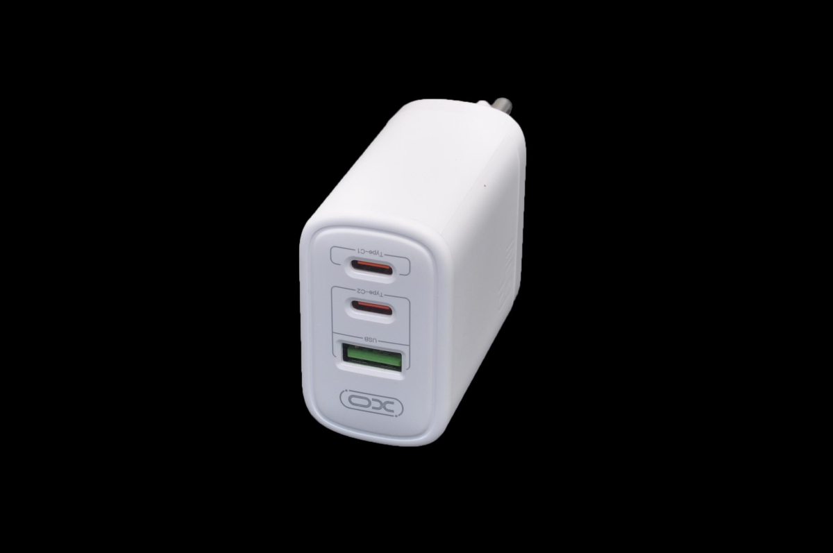 Сетевое зарядное устройство XO CE04, мощность 65Вт, Type-Cx2/USBx1, быстрая зарядка QC 3.0+PD, белый блок