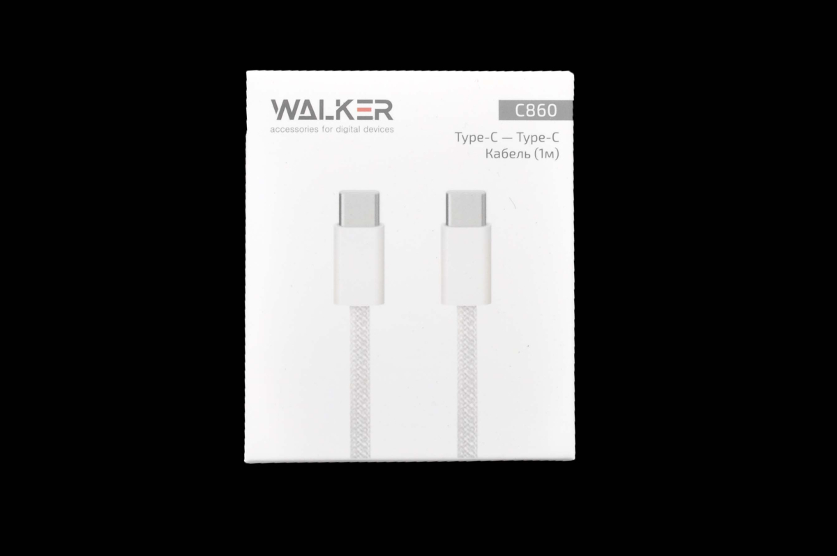 29895 Кабель Walker C860 Type-C - Type-C, 1 метр нейлон, 65W, белый