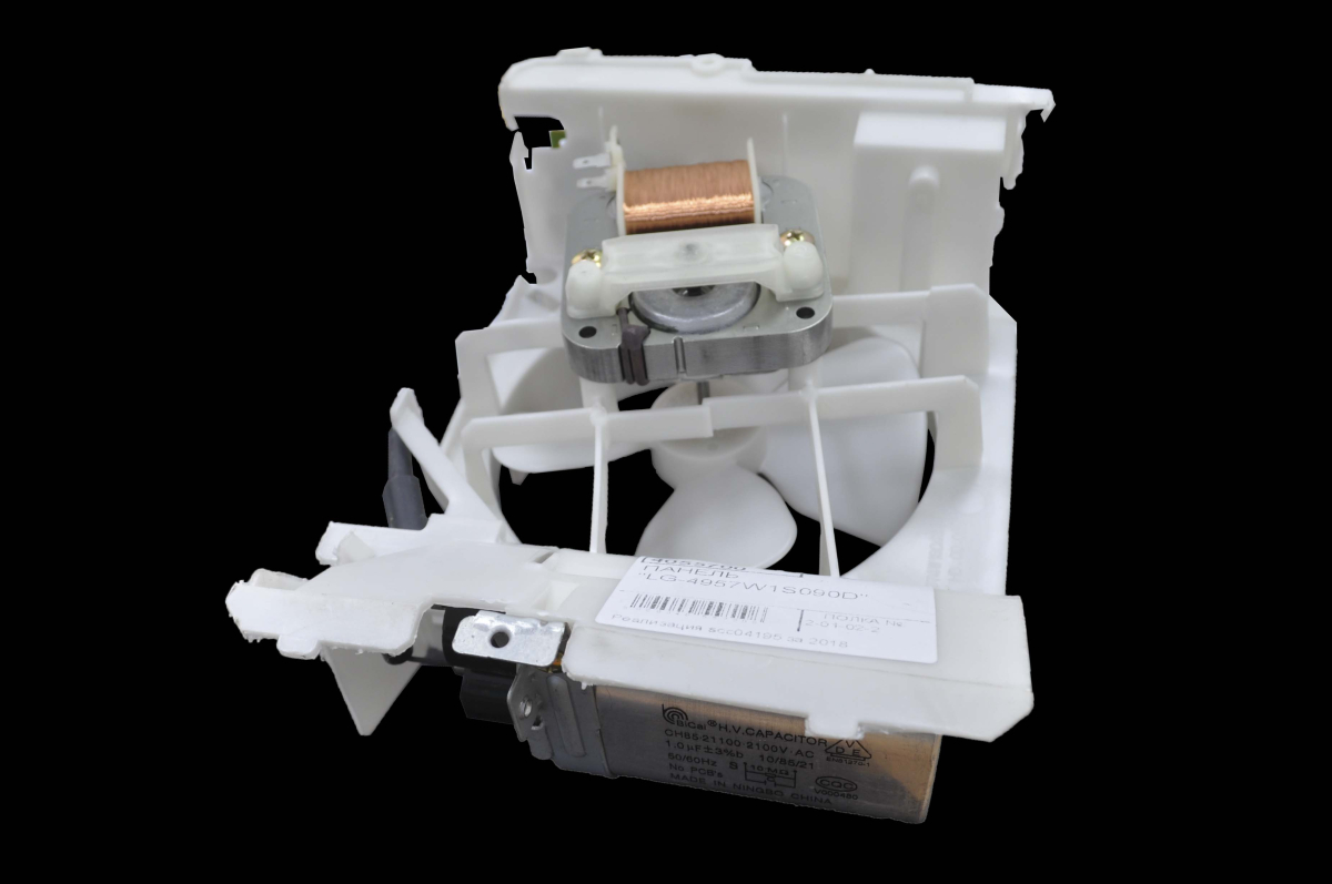 Мотор с вентилятором СВЧ печей LG в сборе с крыльчаткой и конденсатором