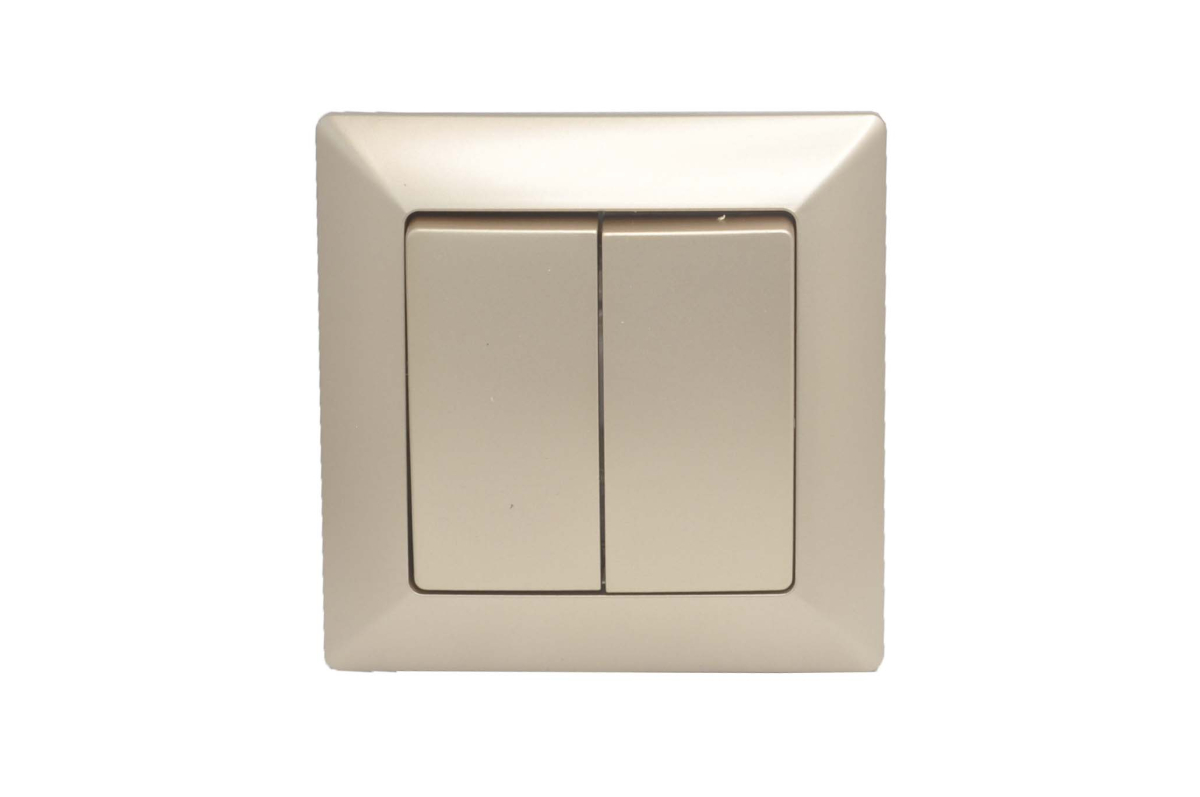 Выключатель 2-клавишный серии Intro Solo скрытой установки цвет шампань 4-104-04. Номинальные характеристики 10А 250В . Выключатель выполнен из качественного негорючего термопласта, укомплектован одноместной рамкой, оснащён винтовыми клеммами. Вертикальное расположение клемм обеспечивает удобный и надёжный монтаж. Клеммы с двумя отверстиями позволяют соединять соседние выключатели шлейфом. Установка в подрозетник производится как на монтажные лапки, так и на винты.