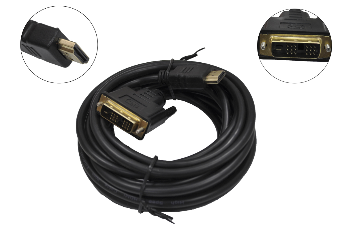 Телекоммуникационный кабель HDMI - DVI вилка-вилка с золочеными разъемами, длина кабеля 4,5 метра