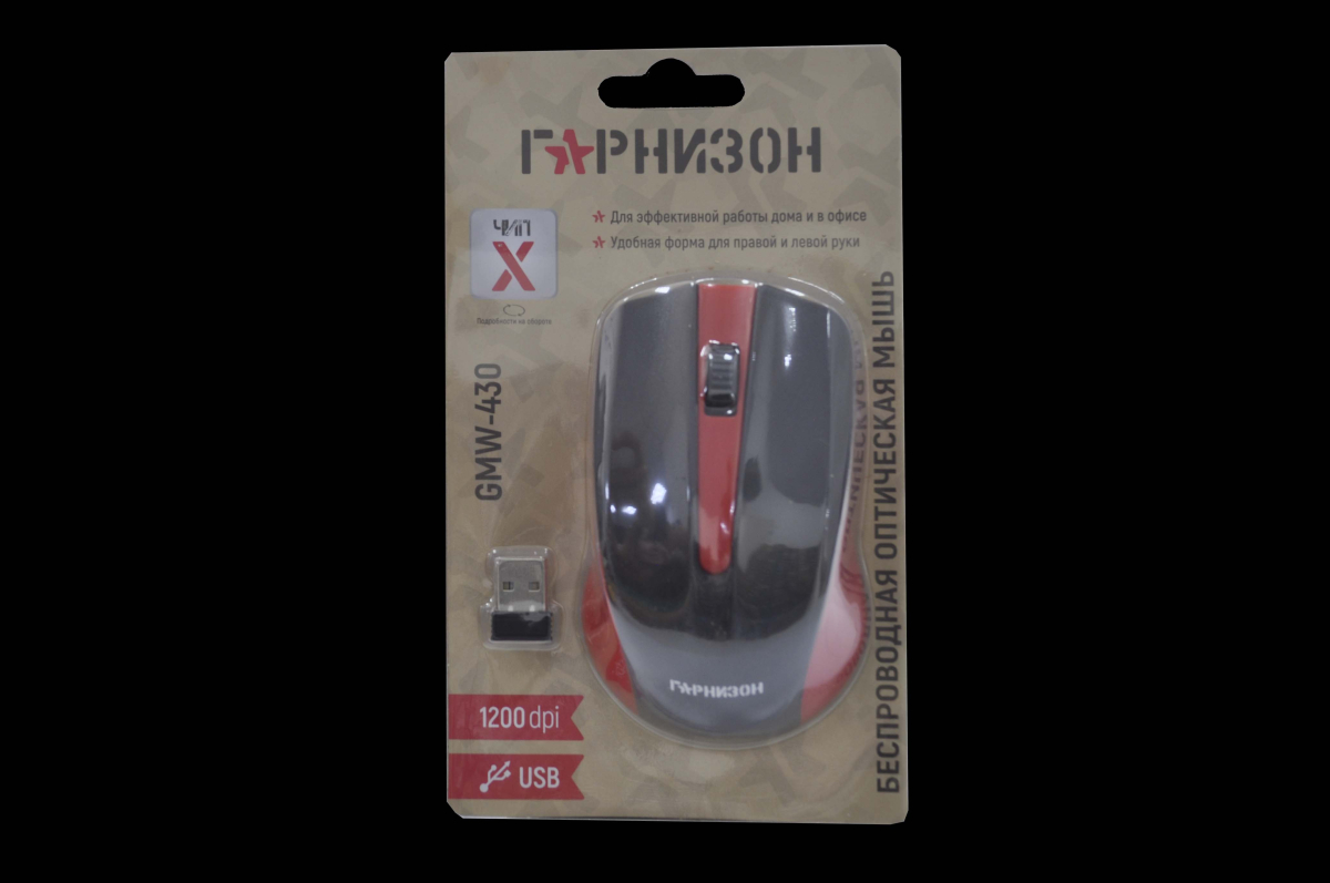 Мышь беспроводная Гарнизон GMW-430R. Тип подключения: беспроводная. Радиус действия: до 10 м. Интерфейс подключения: USB. Оптическое разрешение: 1200 DPI. Кол-во кнопок: 3. Питание: батарея ААА, 2 шт. Размеры: 104 x 66 x 38 мм. Вес: 66 г