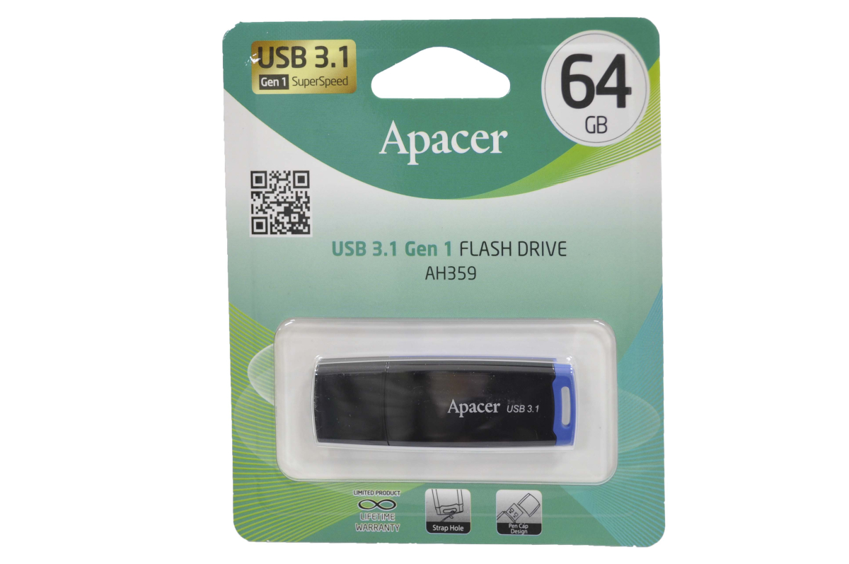 USB Flash накопитель Apacer AH359. Объем памяти: 64 Гб. Интерфейс: USB 3.1. Цвет: черный