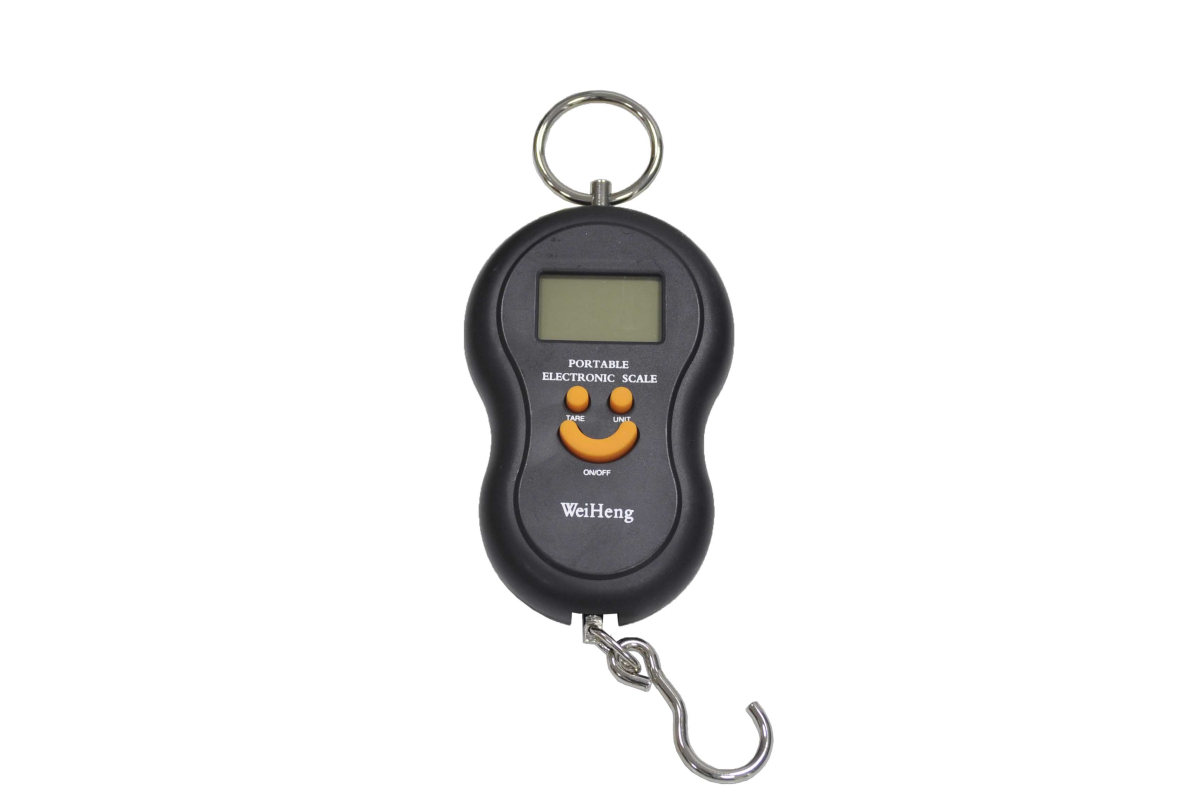 Электронный безмен. Характеристики: Максимальный вес – 40 кг. Минимальный вес – 10 г. Точность взвешивания – 1-10 кг (+/-5 г), 10-40 кг (+/- 10 г). Питание – 2 батарейки AAA/LR03 (мизинчиковые, не входят в комплект). LCD дисплей с подсветкой. Сброс веса тары. Сигнал разряда батарей. Автоотключение. Выбор единиц измерения – килограммы, фунты, унции. Габариты – 90х50х20 мм. Вес (без батареек) – 95 г. Материал корпуса – пластик, металл.