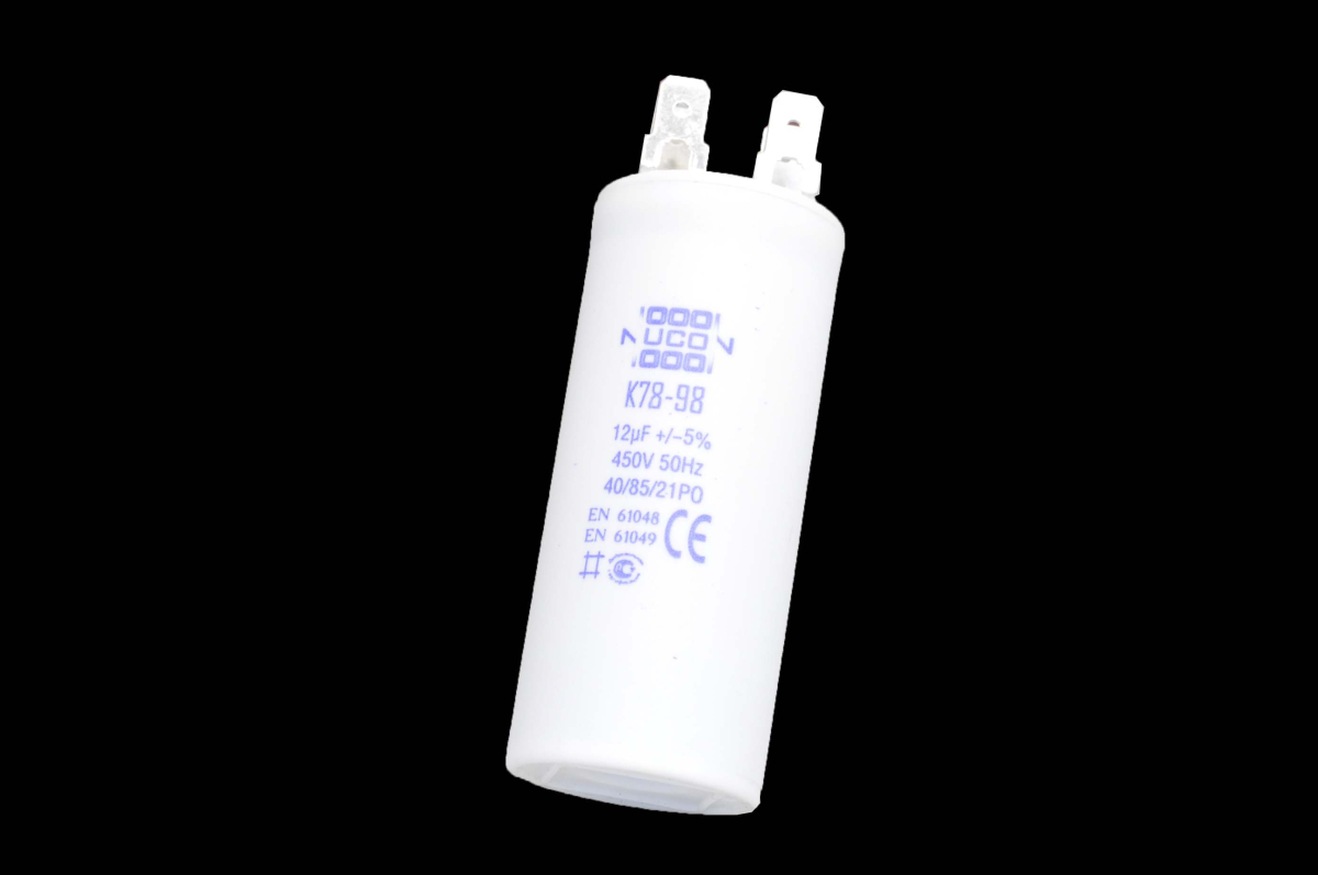 Конденсатор пусковой постоянной ёмкости в герметизированном цилиндрическом корпусе. Номинальная емкость: 12 mkF, номинальное напряжение: 450V, допустимое отклонение ёмкости ±5%, диапазон рабочих температур -40°С…+85°С.