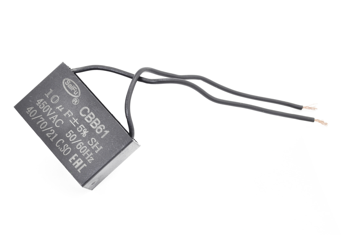 Конденсатор CBB61 полипропиленовый постоянной ёмкости в герметизированном корпусе с гибкими выводами, номинальная емкость: 10 mkF, рабочее напряжение 450В, частота 50-60Гц, предельное допустимое отклонение ёмкости ±5%