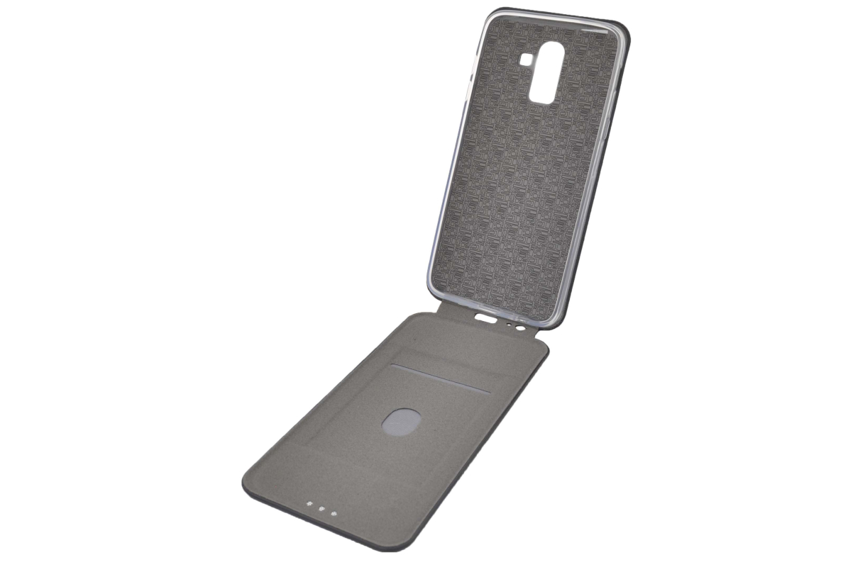 Чехол-флип, под кожу, с силиконовой вставкой для смартфона Samsung J8 2018 чёрный