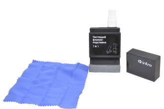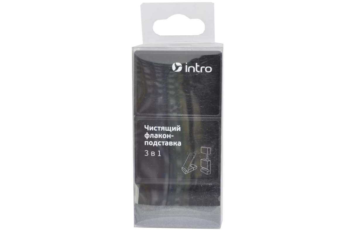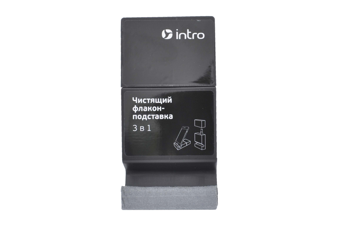 Чистящий флакон-подставка 3 в 1 INTRO спрей, 30 мл + салфетка для избавления от пыли достаточно воспользоваться сухой микрофиброй — этот материал притягивает мельчайшие частицы за счет статического электричества. При необходимости можно использовать флакон в качестве подставки, зафиксировав смартфон в специальной выемке. Стойкие загрязнения удаляют с помощью спрея. Слегка смоченной в растворе салфеткой протирают дисплей, а затем сухой стороной убирают разводы. Компактная емкость с чистящим средством легко поместится в кармане сумки или рюкзака. Салфетка отличается прочностью и долговечностью.