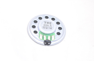 Динамик TRI-30N-A. Диаметр 30 мм. Выходная мощность 1 Вт. Импеданс 50 ом, высота 5 мм, металл