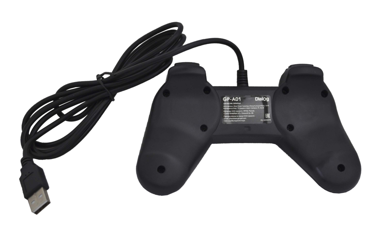 Геймпад GP-A01. Цвет: Черный. Интерфейс: USB 2.0 (5 В, 500 мА). Режимы работы: Цифровой. Органы управления: Восьмипозиционный переключатель направления и кнопки управления. Количество кнопок управления: 10. Вибрация: Нет. LED подсветка: Нет. Радиоинтерфейс: Нет. Длина кабеля: 1,8м ± 0,1м. Отсоединяемый кабель: Нет. Минимальные системные требования: IBM PC совместимый компьютер, CPU 300 мГц или выше, 128 Мб ОЗУ, свободный порт USB. Поддерживаемые ОС: Microsoft Windows XP SP2/SP3, Vista SP2, Windows 7SP1, 8, 8.1, 10. Комплект поставки: Джойстик-геймпад, руководство пользователя, гарантийный талон, упаковка